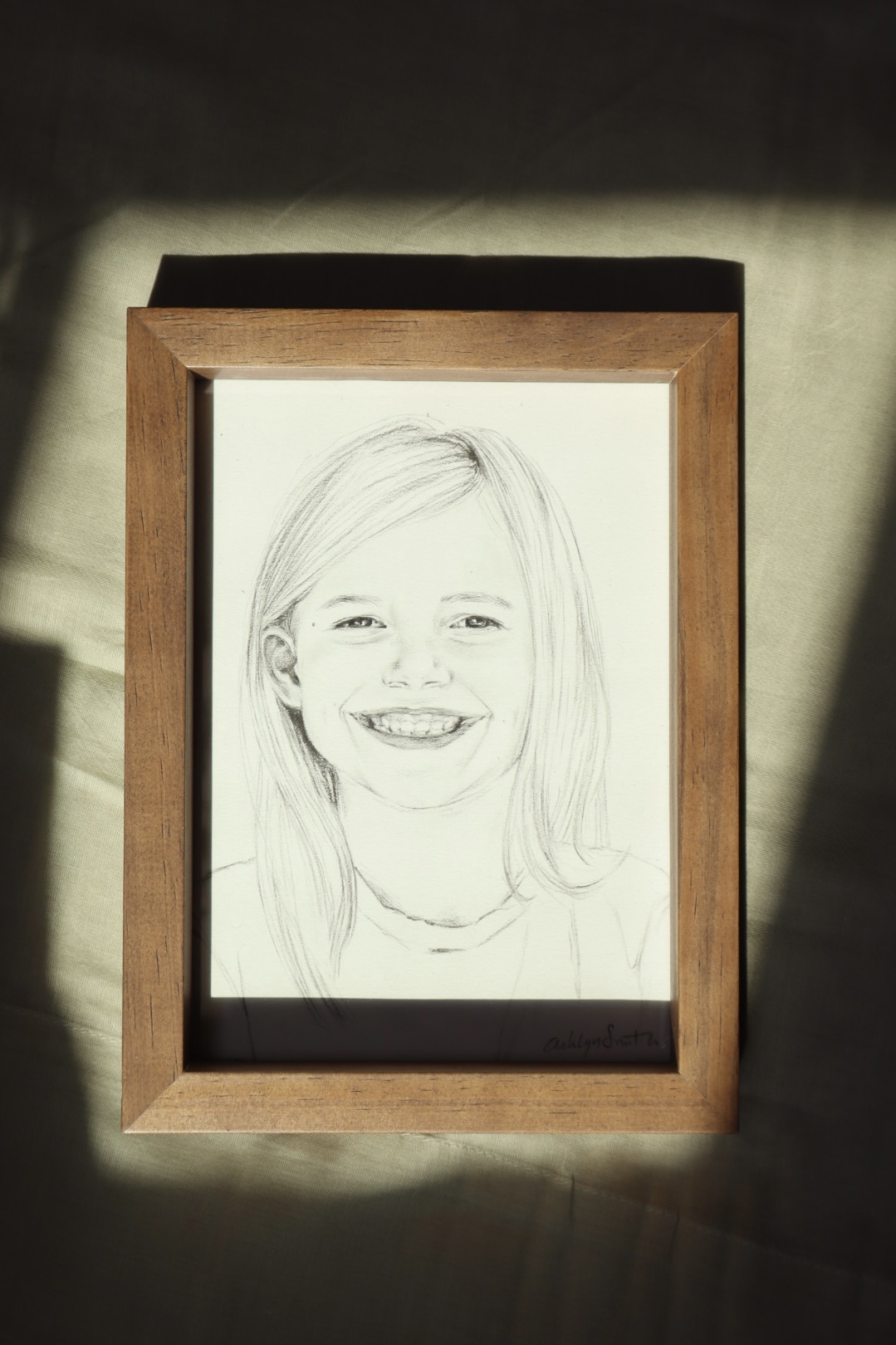 - Girl's smiling face pencil drawing by Ashlyn Smith