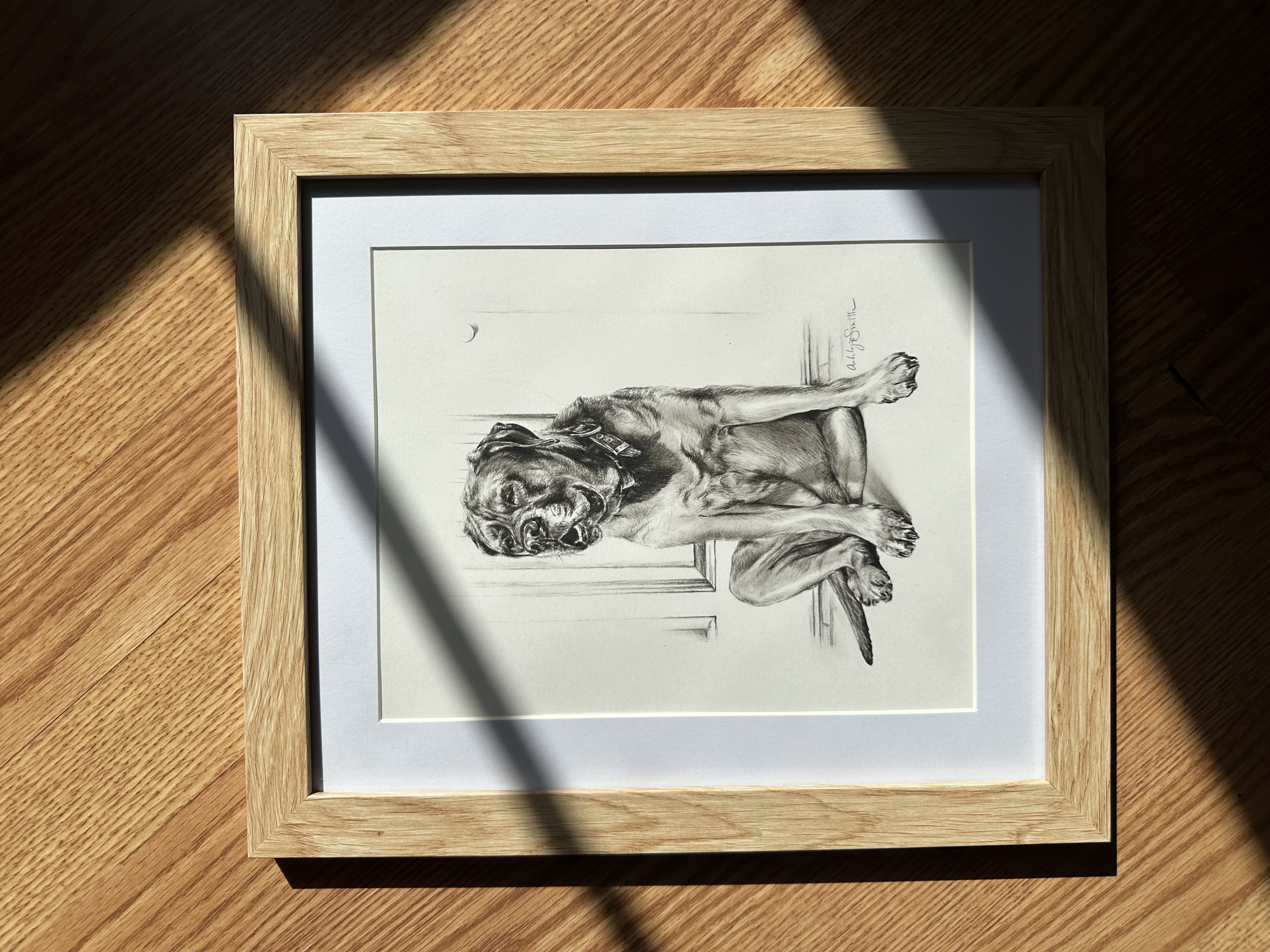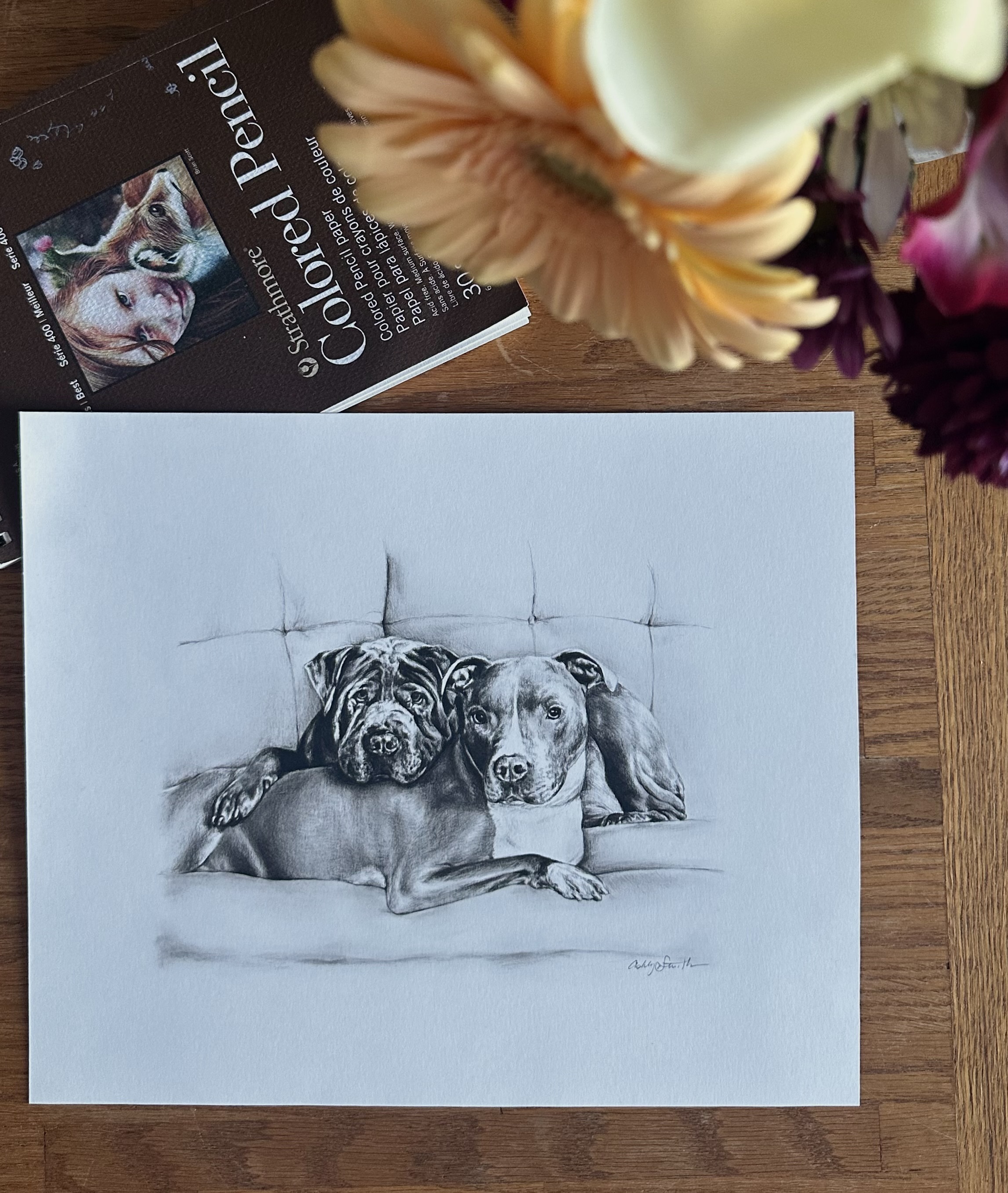 - Two dog on a coach. Charcoal drawing by Ashlyn Smith