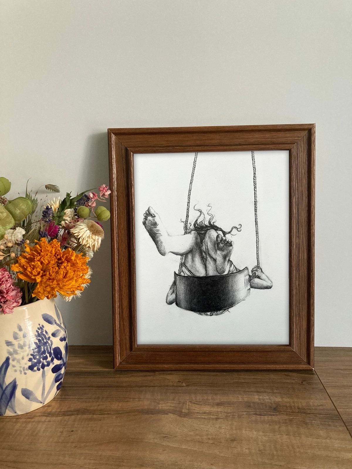- Girl on swing feet in the air pencil drawing by Ashlyn Smith